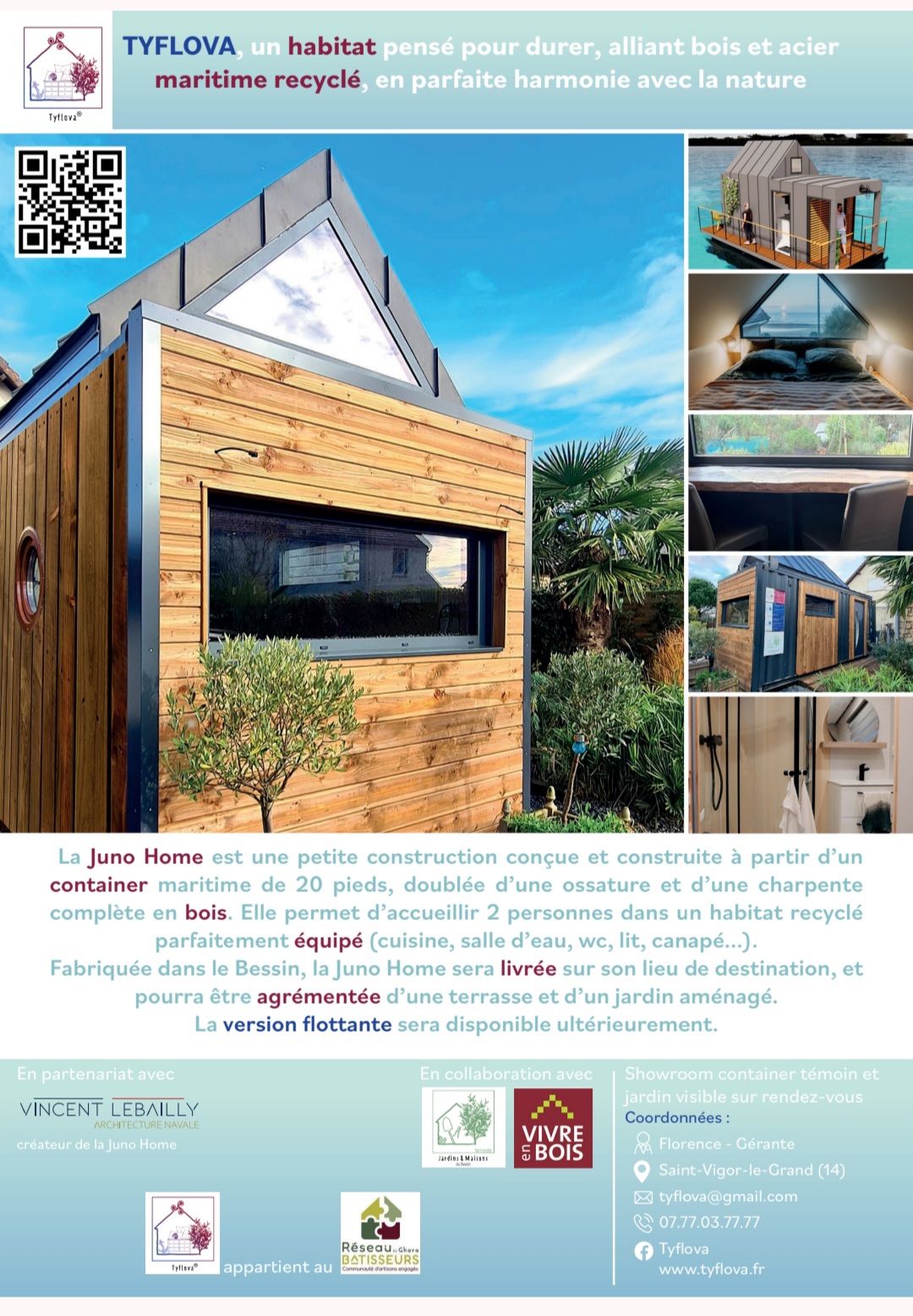 Fabriquée dans le Bessin, la Juno Home sera livrée sur son lieu de destination, et pourra être agrémentée d'une terrasse et d'un jardin aménagé.